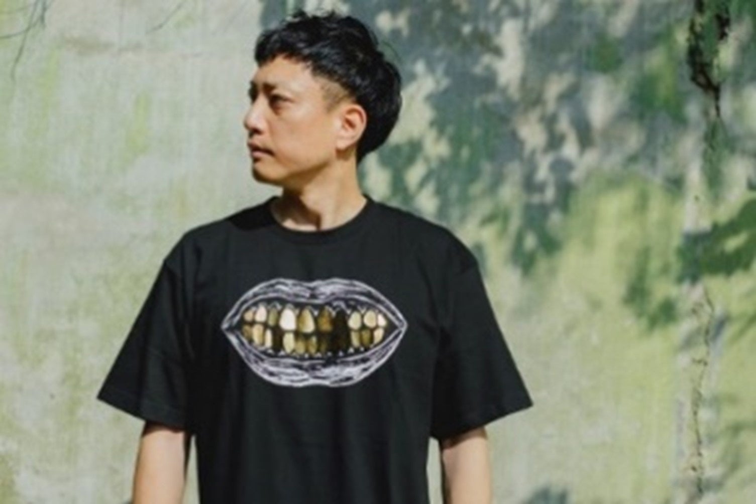 直島・本村地区で展開している家プロジェクト「はいしゃ」のアーティスト大竹伸朗のオリジナルTシャツです。Tシャツ用に描きおろされた「歯」の一部を金箔でプリントしています。背面には「なおしま」の文字入りです。