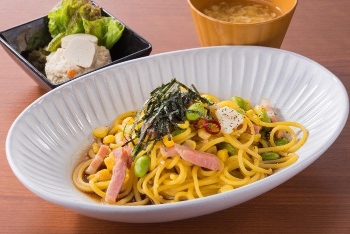 青森の美味しいがたっぷり!にんにく香る嶽きみ和風パスタセット 1,100円(税込)