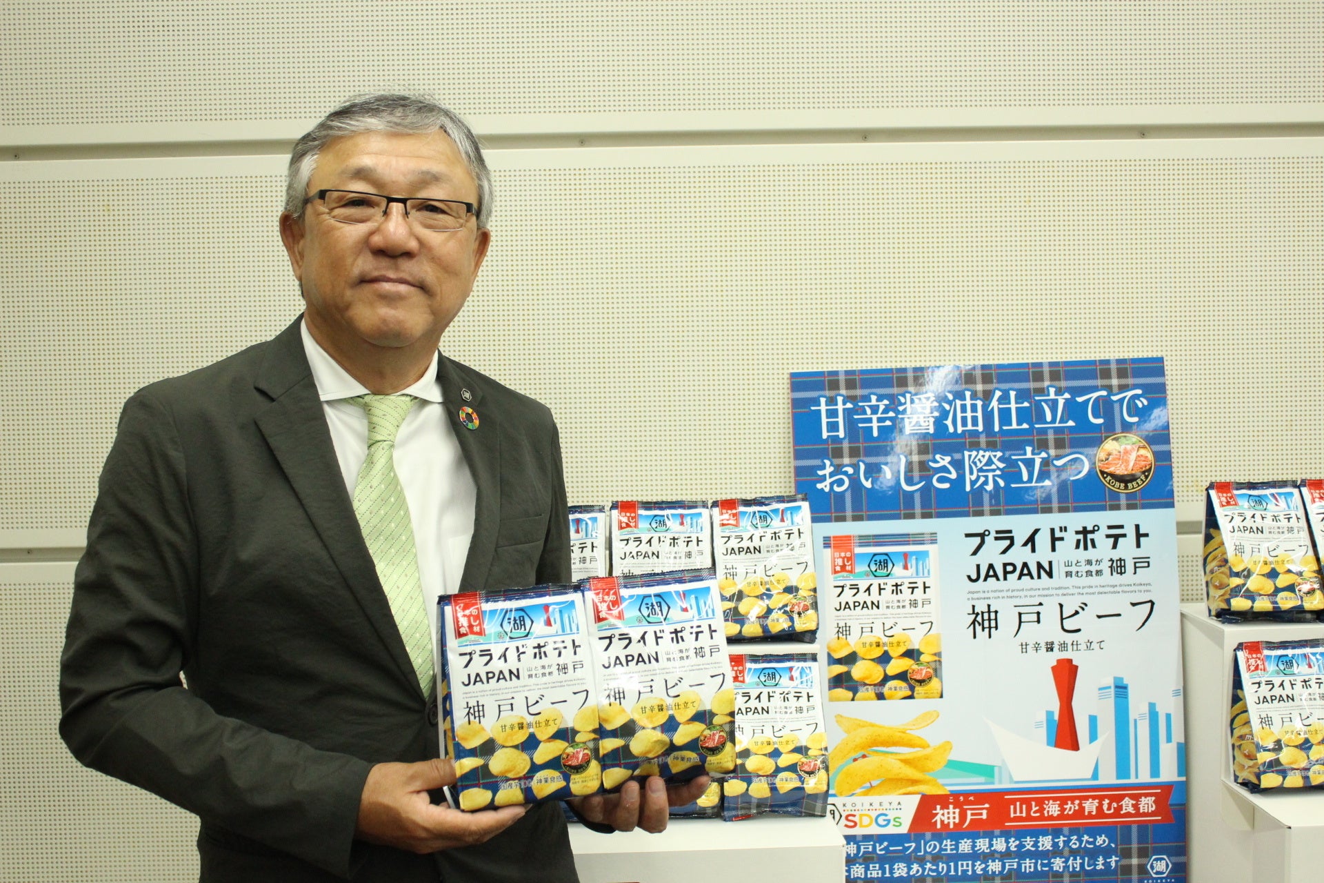 「湖池屋プライドポテト JAPAN 神戸ビーフ」 2年ぶりの発売を記念し、神戸市役所へ表敬訪問を実施
