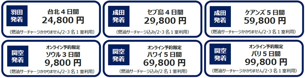 その他、各空港発着で特別商品をご用意しております。詳しくはHISホームページをご確認ください。