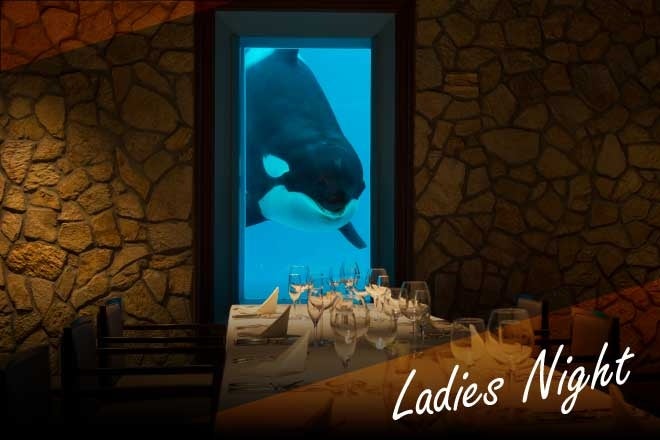 「レディースナイトプラン」は閉館間際の16:00からプログラムを開始し、閉館後の水族館を約4時間半かけてゆったりと楽しめる特別プログラムです。女性からの圧倒的な人気を誇るベルーガに触れる「ベルーガにタッチ」を体験し、日が落ちたオーシャンスタジアムでライトアップされた「シャチナイトパフォーマンス」を観覧します。その後、日本で唯一シャチが水中を泳ぐ姿を見ながら食事ができるレストラン「OCEAN」で、女性飼育員たちが同席するセミコースディナーをお楽しみください。そしてプランの締めくくりには、飼育員による解説付きの「ナイトアドベンチャー」で海の動物たちの寝姿を観察することができます。