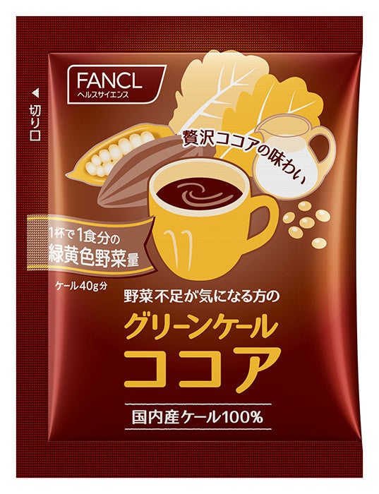 株式会社ファンケルは10月16日(水)から、「グリーンケールココア」(1箱7袋入り/価格:1,080円<税込>)を通信販売と直営店舗にて数量限定で発売します。同製品は、野菜の王様「ケール」を原料とした青汁を温かく、おいしく召し上がっていただける製品です。毎年冬季限定で発売し、ご好評をいただいております。「ケール」と「カカオ」「豆乳パウダー」の三つの素材を使用し、ビターでコク深い大人の味わいに仕上げました。冬の時季の健康維持にお勧めの製品です。
