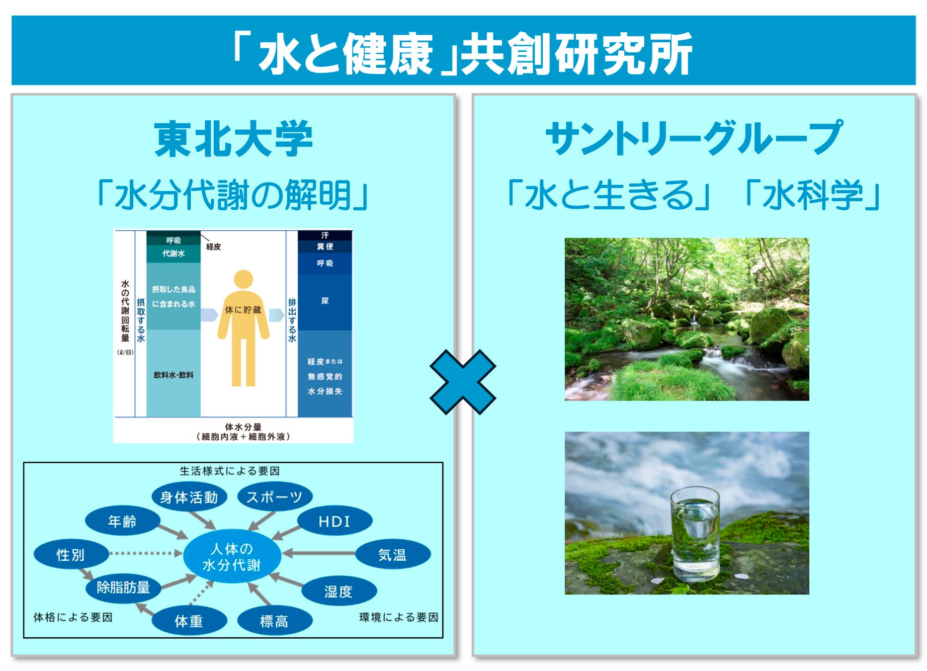 国立大学法人東北大学と、サントリーグローバルイノベーションセンター株式会社は、「サントリーグローバルイノベーションセンター×東北大学 『水と健康』共創研究所」を設置し、4月より共同研究を開始しました。