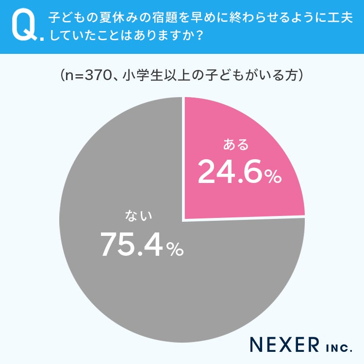 24.6%の方が、子どもの夏休みの宿題を早めに終わらせるように工夫していたことが「ある」と回答しています。
