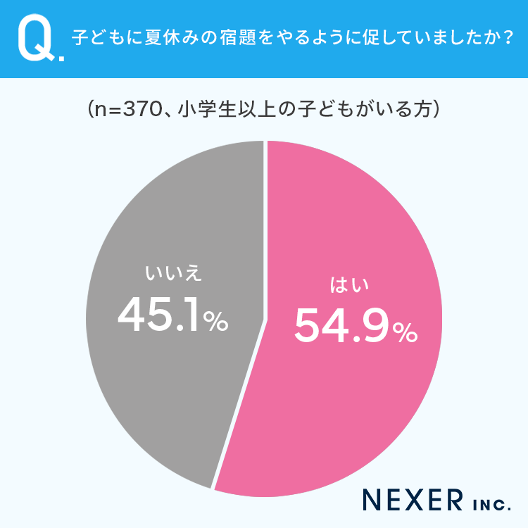 54.9%と半数以上の方が、子どもに夏休みの宿題をやるよう「促していた」と回答しています。