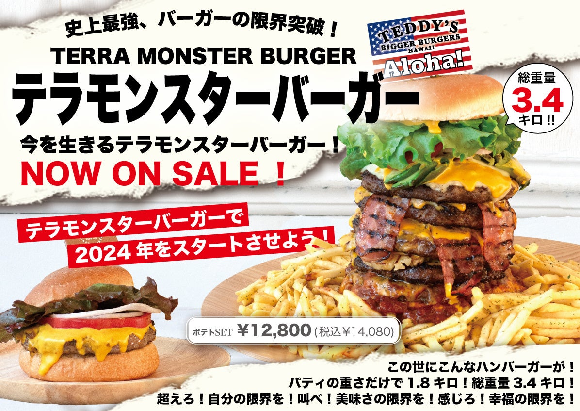 ▶破格のメガ盛りに挑戦! 総重量約3.4kgの「テラモンスターバーガー」、ハワイ発「テディーズビガーバーガー」より新登場!