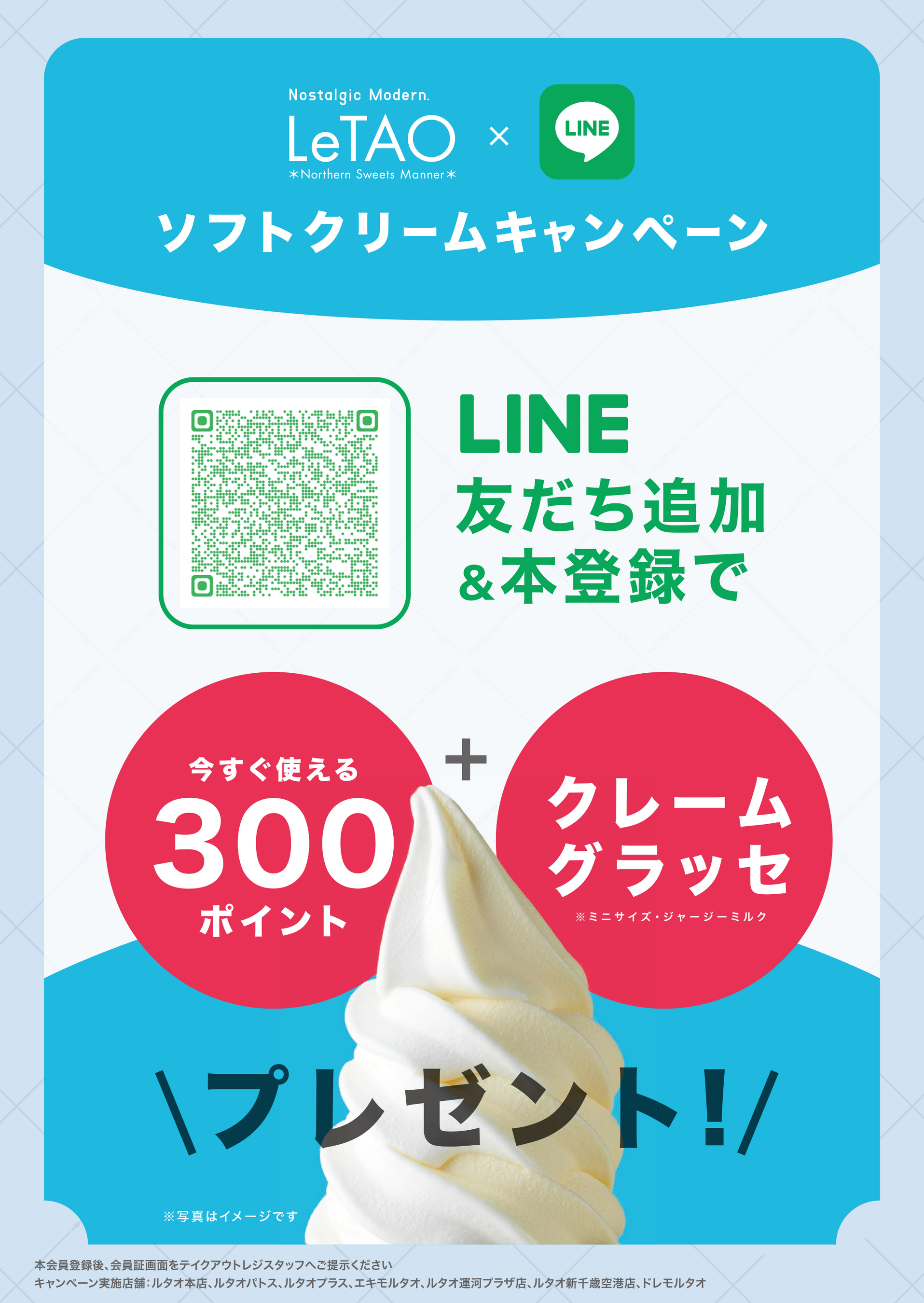 【3月限定】小樽洋菓子舗ルタオLINE公式アカウント本登録で「300ポイント&ミニソフトクリーム」ダブルプレゼントキャンペーンを開催!