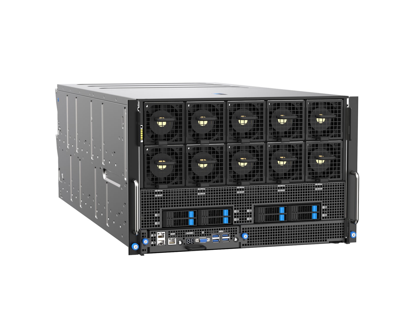 NVIDIA HGX™アーキテクチャを備えたASUS ESC N8-E11は、デュアル第5世代インテル Xeon スケーラブル・プロセッサー[A1] と8基のNVIDIA H200 Tensor Core GPUを搭載し、最大10+1 PCI Express® (PCIe®)スロット、32 DIMM、10 NVMe、デュアル10G LANをサポートし、多様なコンピューティングニーズに対応する柔軟性と拡張性を提供します。