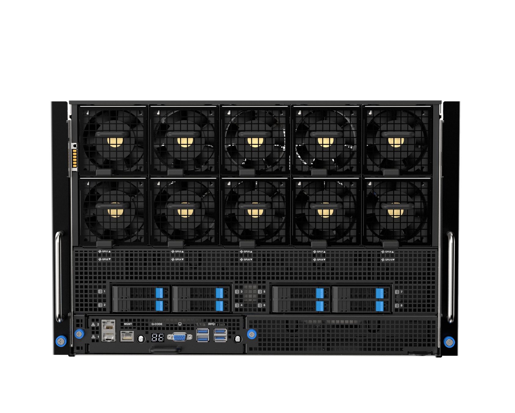 ESC N8-E11は、NVLinkを介した先進的なGPU間相互接続の特別な設計が施されており、専用の1GPU-1NICトポロジは、AI、機械学習、高性能コンピューティング(HPC)などのデータ集約的なタスクに対応する高いスループットを保証します。
