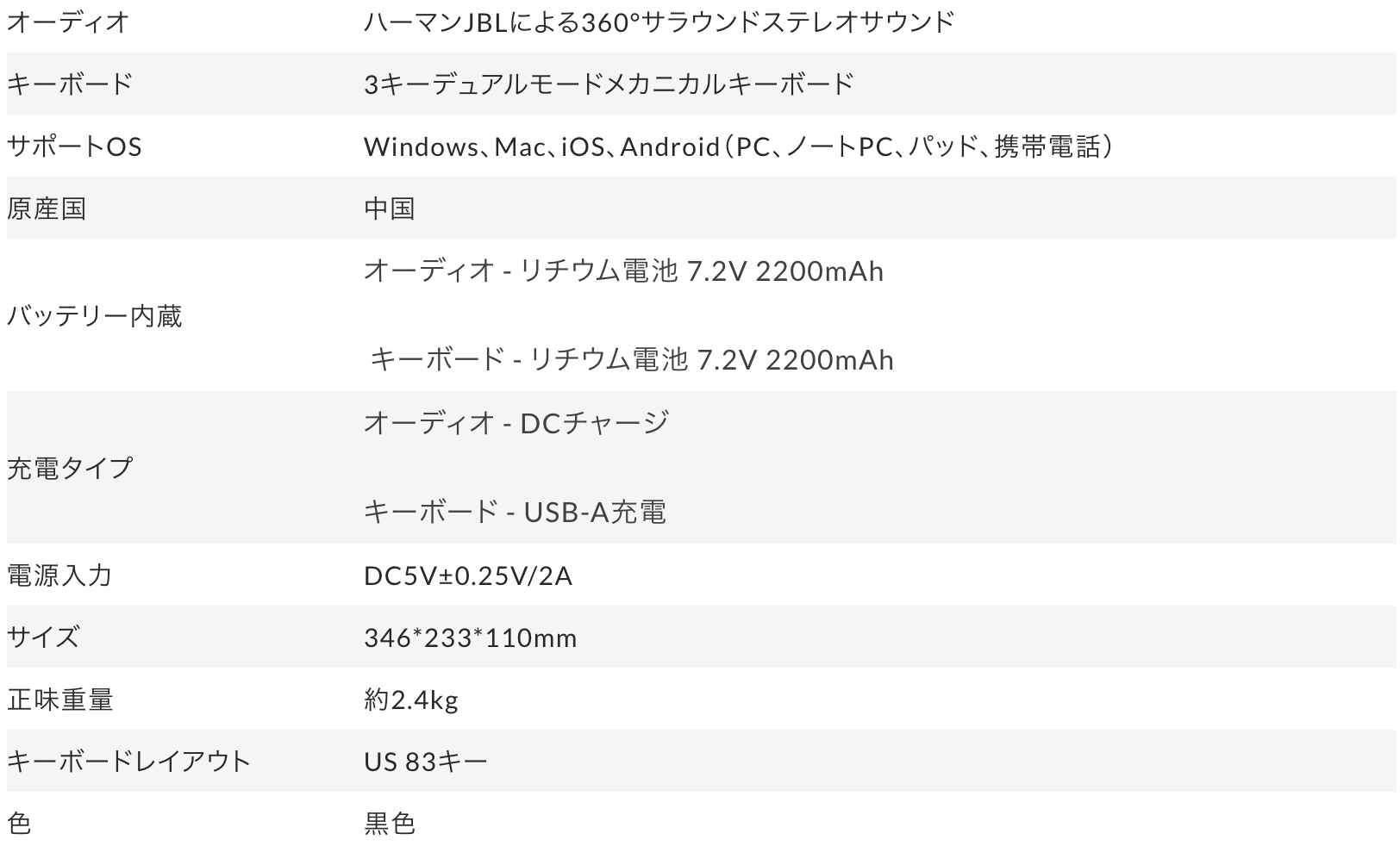- 音響とキーボードで独立電源化・相互の操作に影響しない