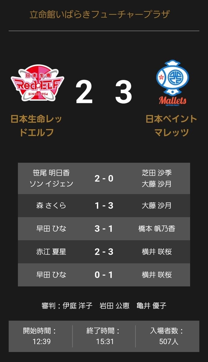 日本生命レッドエルフ vs 日本ペイントマレッツ