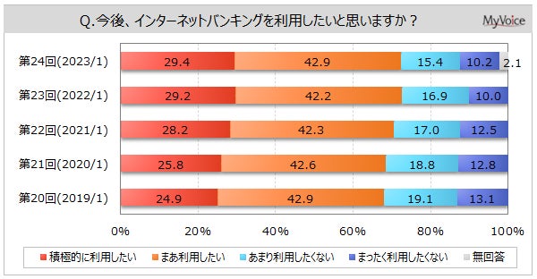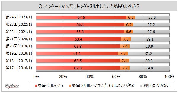 マイボイスコム株式会社(東京都千代田区、代表取締役社長:高井和久)は、24回目となる『インターネットバンキングの利用』に関するインターネット調査を2023年1月1日~5日に実施しました。調査結果をお知らせします。