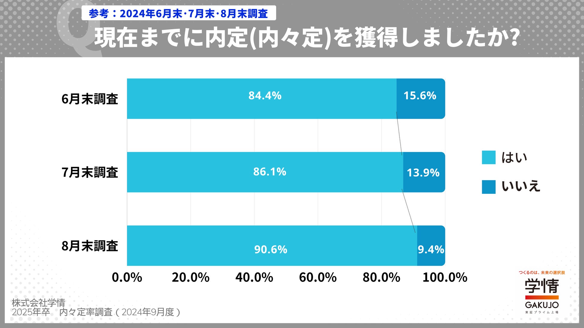 2025年卒学生の内々定率は8月末時点で<91.2%>。内定式を1ヵ月後に控え、内々定率が9割を超える。