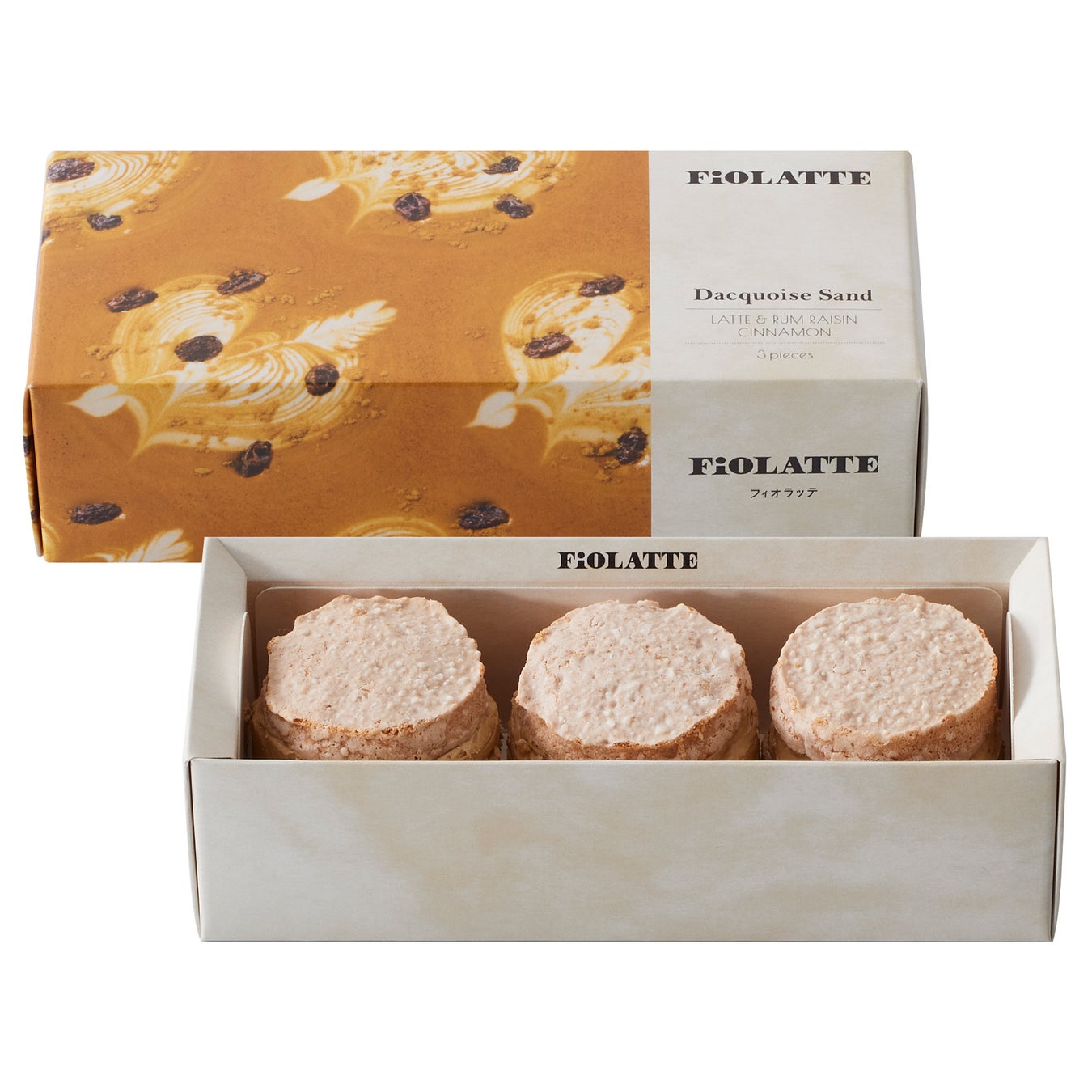 「ダックワーズサンド」は、ほんのりとシナモンが香るサクサクのダックワーズ生地で、ラムレーズンを練り込んだカフェラテ風味の発酵バタークリームをサンドした、見た目もインパクトのある看板商品です。華やかなカフェラテの薫りのなかに、ラムレーズンとシナモンのアクセントが楽しめる濃厚で贅沢な味わいは、甘くて優しい癒しの時間をお届けします。その人気は、これまでメディアでも多数取り上げられ、多くのお客様に愛される商品です。