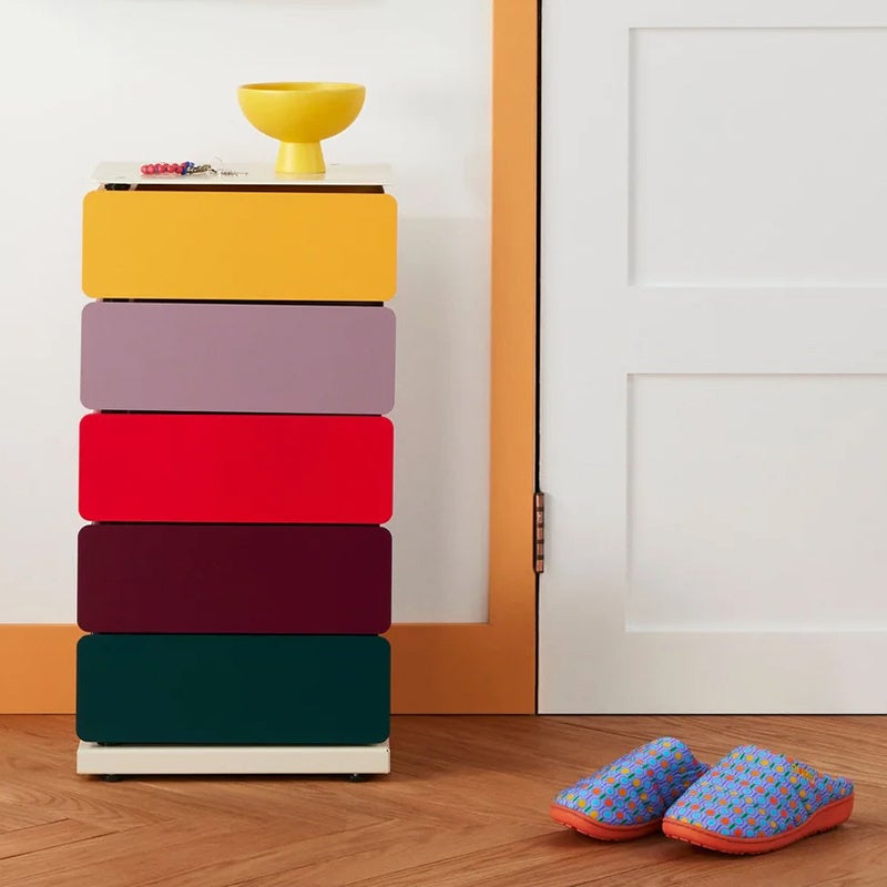 5-ドロワ ピボット キャビネット イエロー x コーラル x ダークグリーン