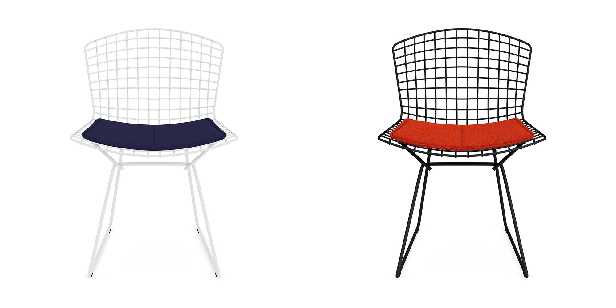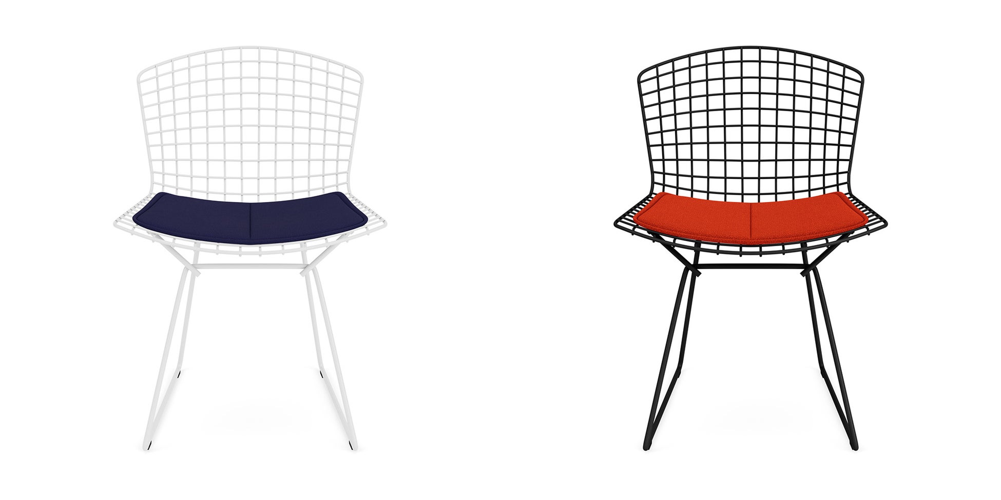 繊細かつインダストリアルな外観を持つHarry Bertoia(ハリー・ベルトイア)の有名なサイドチェア(1952年製)は、ミッドセンチュリーを代表するデザインのひとつです。サイドチェアはMoMAコレクションに収蔵されており、ニューヨーク近代美術館(MoMA)の中庭にもこのチェアが並べられています。※10月発売(受注商品)