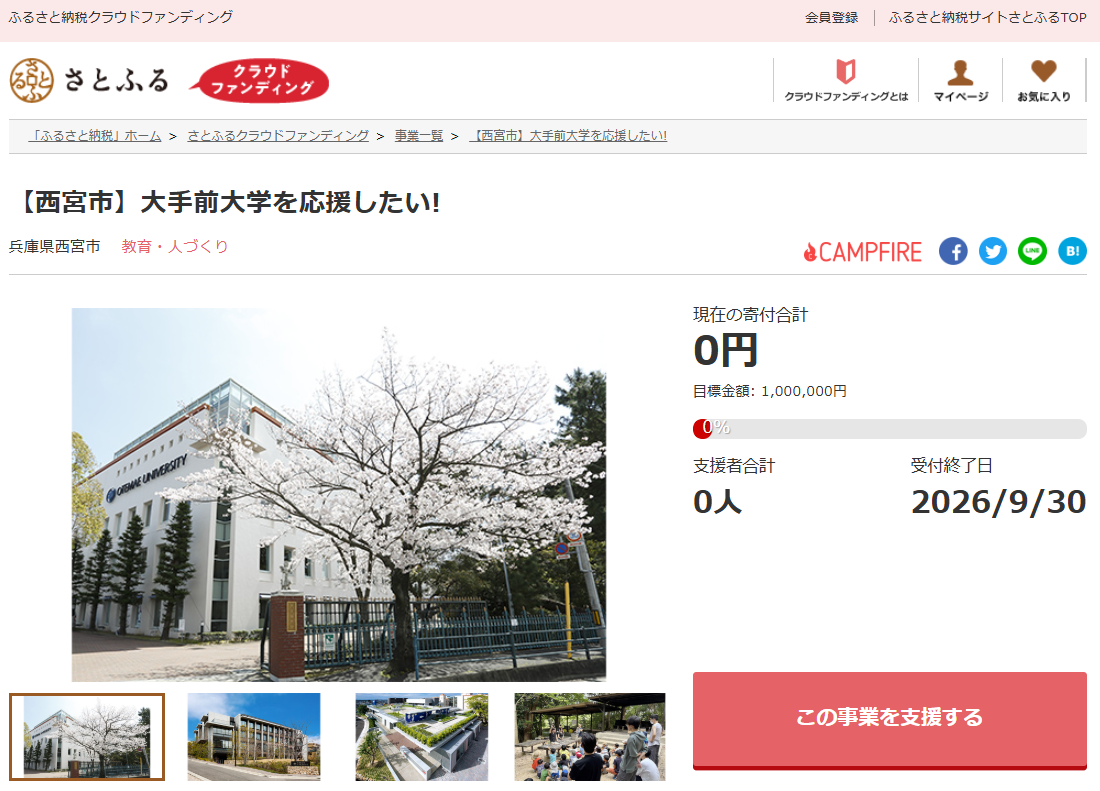 兵庫県西宮市とさとふる、市民と学生の学びの充実および地域活性化を目指し、市内4大学への寄付受け付けを開始