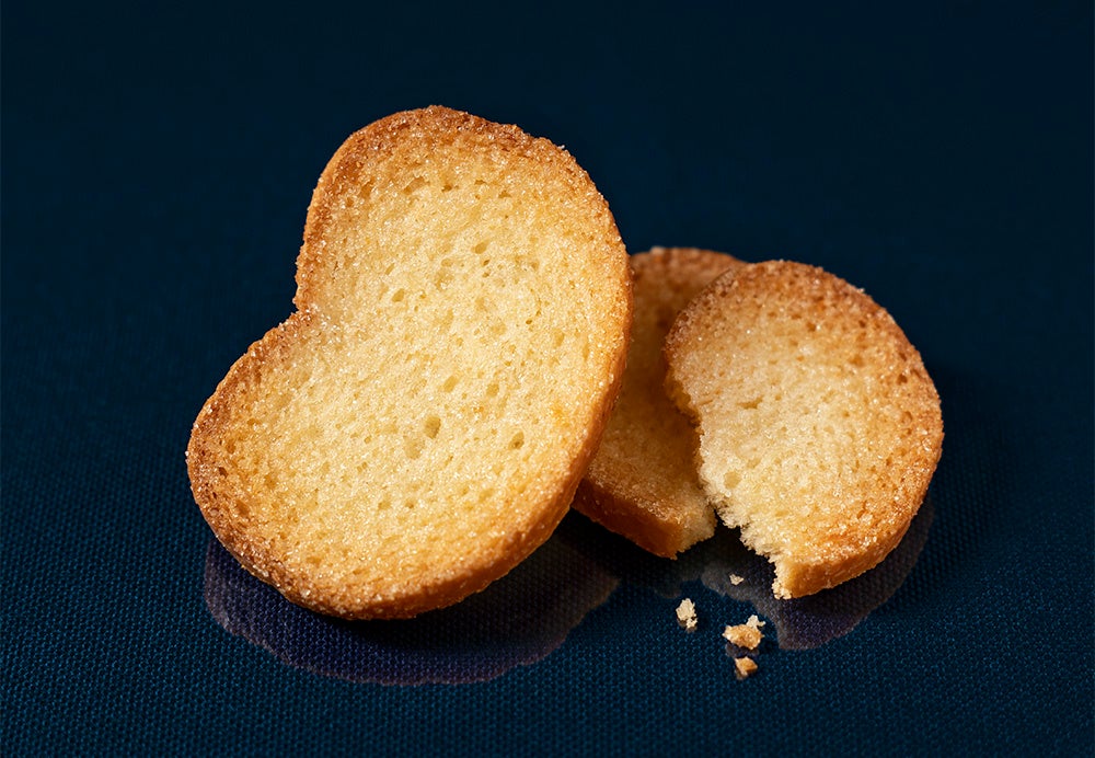 フランスパンは、ラスクにする際理想のパン生地になるよう選び抜いた小麦粉で焼き上げました。可愛らしい東京ばな奈型は、このラスクのために金型から作り上げたオリジナル。袋を開けたとき、思わず笑みがこぼれてしまうようなそんな可愛らしさにこだわっています。