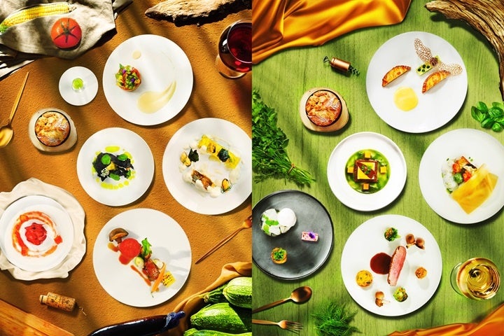 ランチプログラム『Color Palettes-太陽の贈り物-』は、太陽の光で色鮮やかに実る夏野菜をテーマに、野菜の美しい彩りとフレンチビストロノミーが溶け合う視覚と味覚を刺激する美食体験を提供します。ディナープログラム『Summer Breeze-風の記憶-』は、陽射しの中で心地よい風が運ぶ爽やかなハーブの香りをテーマに、さまざまなハーブの特徴的な香りとフレンチビストロノミーが織りなす調和を嗅覚と味覚でお楽しみいただけます。