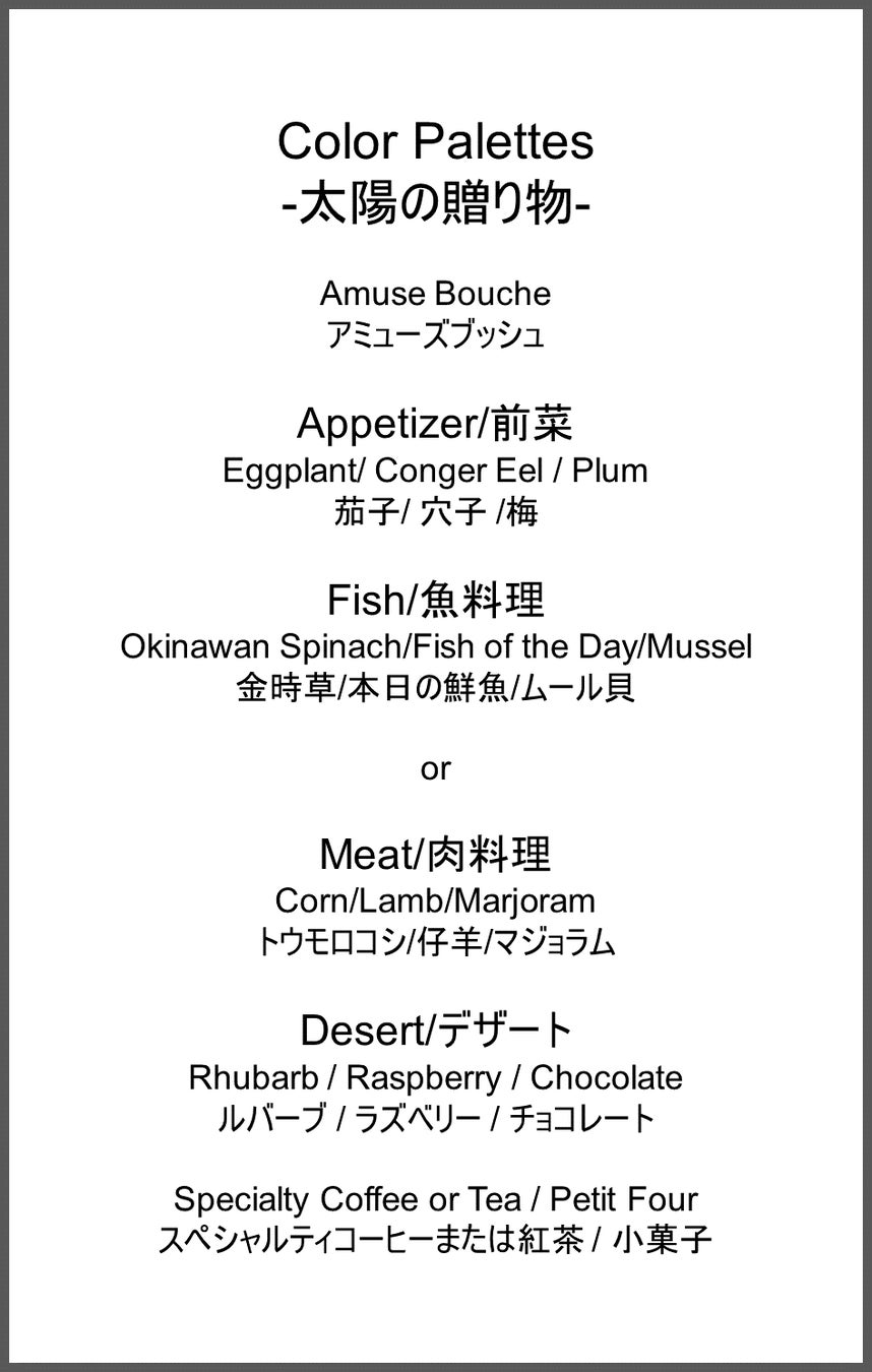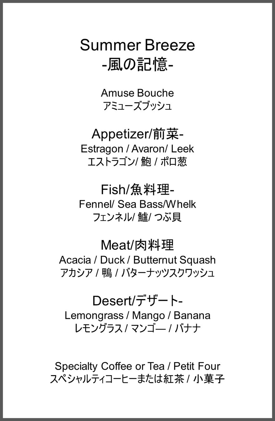 ランチプログラム『Color Palettes-太陽の贈り物-』&ディナープログラム『Summer Breeze-風の記憶-』