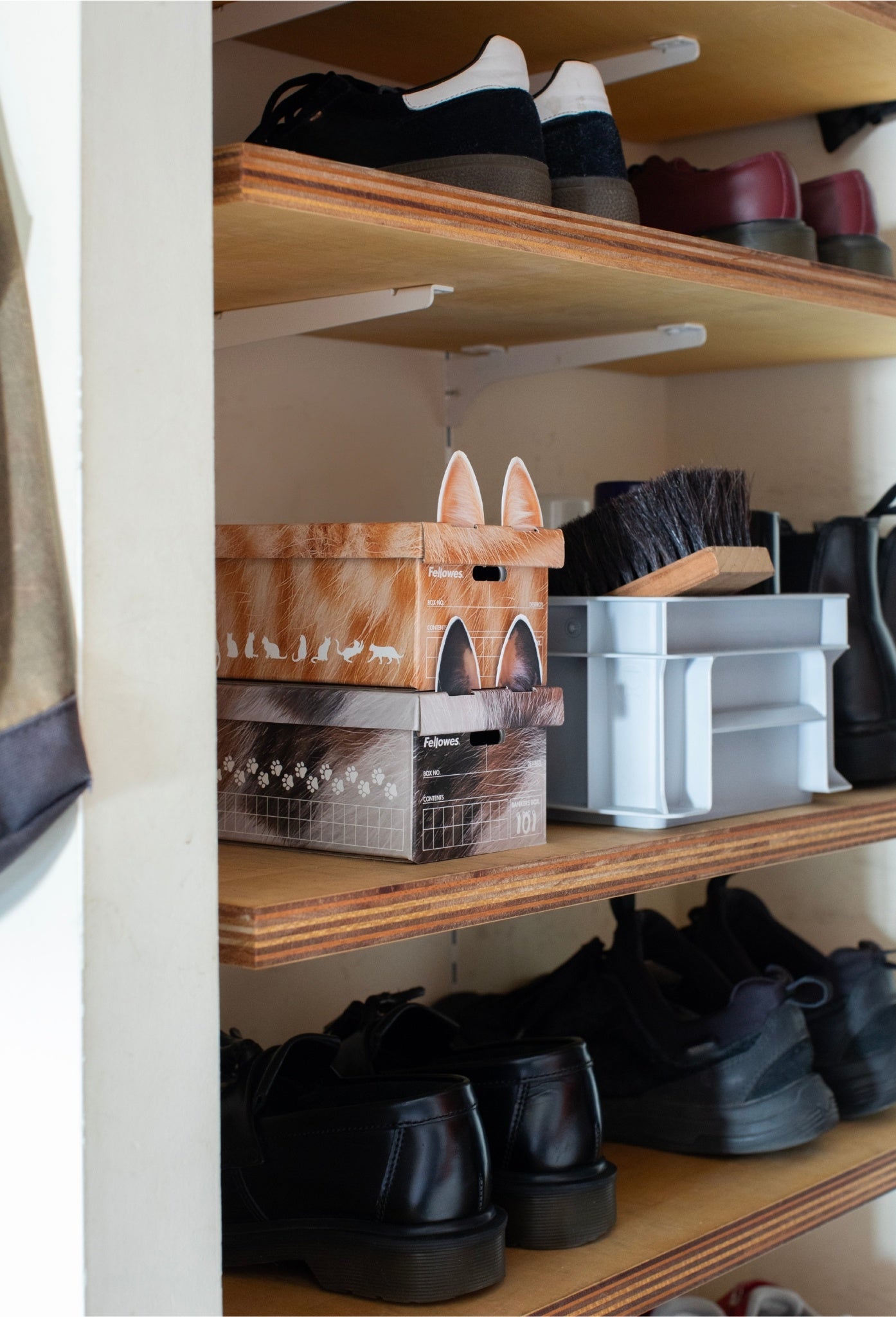そこでこの度、手に取りやすいサイズ感に遊び心を添えた「ねこ柄」のバンカーズボックスを数量限定で発売します。本体にはねこのフワフワとした毛並みを表現したデザインを採用し、付属のねこ耳パーツをフタ部分に取り付けられる特別仕様となっています。側面にはねこのシルエットや足跡をデザインし、細部までねこの世界観を表現しました。