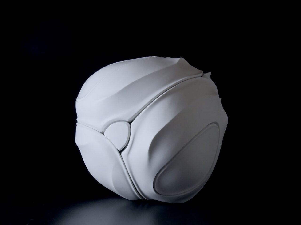 ◆具象的モチーフで作品を制作、造形の完成度や作品のシャープさにおいて抜群の存在感を発揮している。虫形の造形に一部デフォルメを加えることで、現実の虫とは異なる形にブラッシュアップしている。大型の虫形の立体造形と食器のいずれにも、本人のめざす世界観、美意識が共通して現れており、魅力的な作品を生み出している。