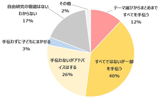 ■半数以上の保護者が「自由研究」を手伝う、手伝わずに子どもにまかせる保護者は1割未満