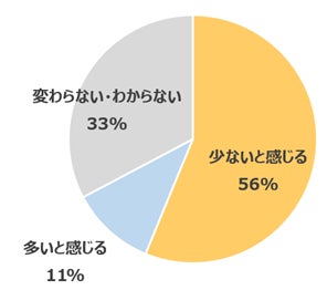 近年、小学校によっては、宿題の量を減らしたり、なくしたりもする動きも見られます。保護者は、子どもの夏休みの宿題の量をどのようにとらえているかを聞いたところ、半数以上が「少ないと感じる」と回答しました。