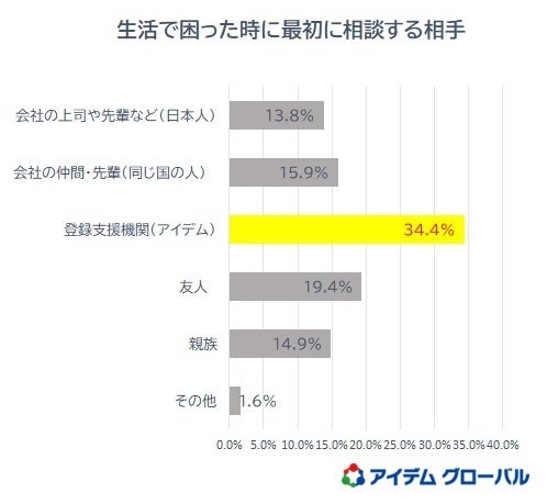 困った時に最初に相談するのは「登録支援機関」34.4%