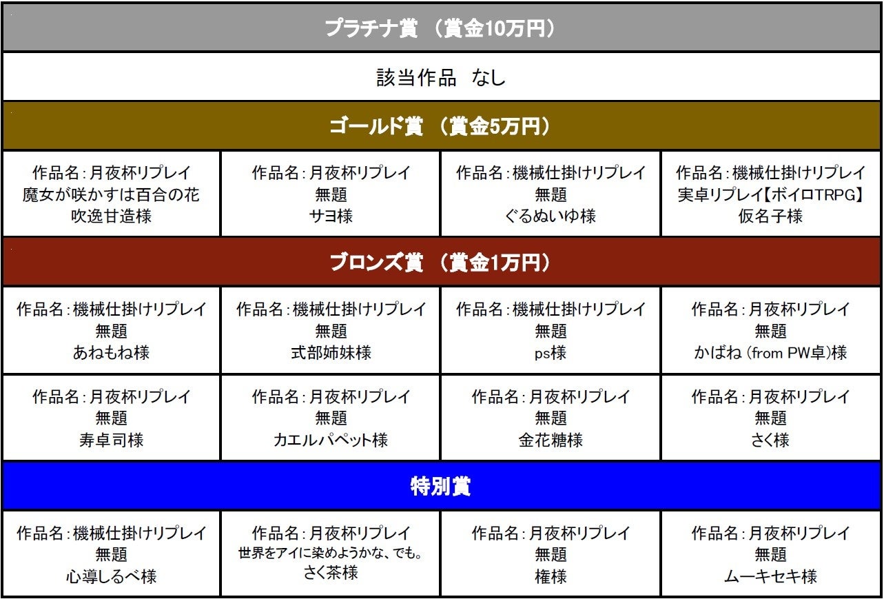 | ■「TRPGリプレイコンテスト」の各賞の受賞者を本日発表! |