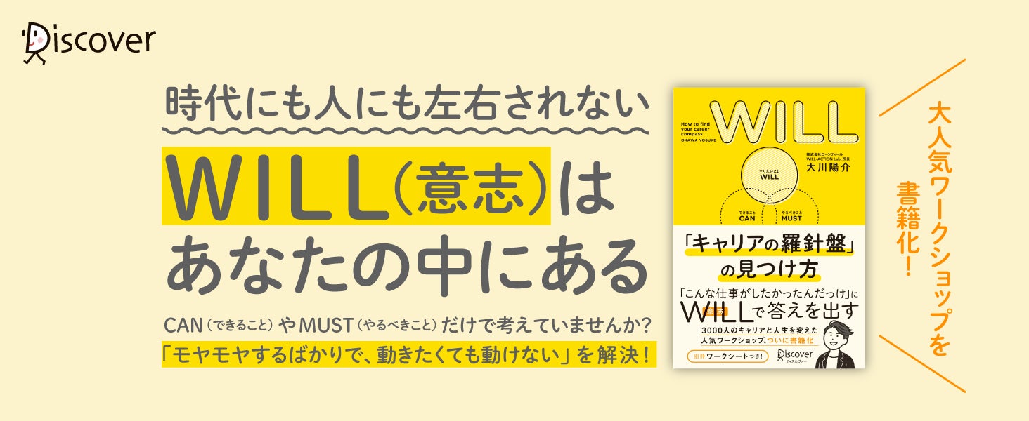 株式会社ディスカヴァー・トゥエンティワン(本社:東京都千代田区、代表取締役兼社長執行役員:谷口奈緒美)は2024年3月22日に『WILL「キャリアの羅針盤」の見つけ方』(大川陽介・著)を刊行しました。