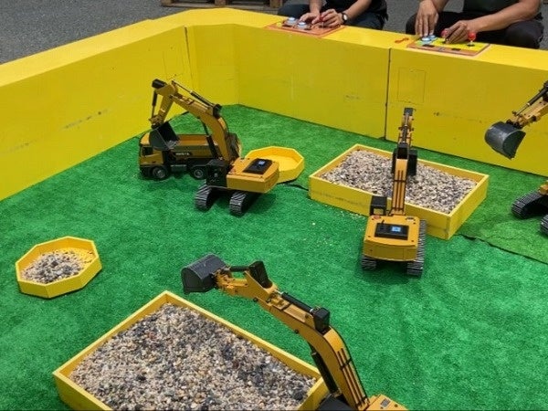 ショベルカーやフォークリフトなど、小さいながらも本格仕様の働く車を操作して遊ぶツールです。