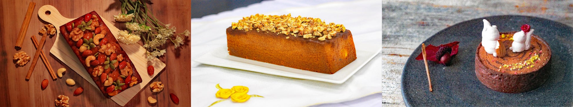 また、料理好きな高校生たちの自己表現の場として同時開催された「高校生スイーツレシピ+フォトチャレンジ」部門には、589件もの応募がありました。厳正なる審査の結果、三ツ星レシピ賞には、おかやま山陽高等学校2年・溝口萌音さん「ハニースマイル! ~キンカンとハニーナッツのパウンドケーキ~」=写真左、昭和学園高等学校2年・永田乙葉さんと北原杏美さん「ガトーノワゼット」=同中央、レコールバンタン高等部東京校2年・仲宗根波琉さんと大嶋沙紀さん「りすの日常」=同右=の3作品が輝きました。