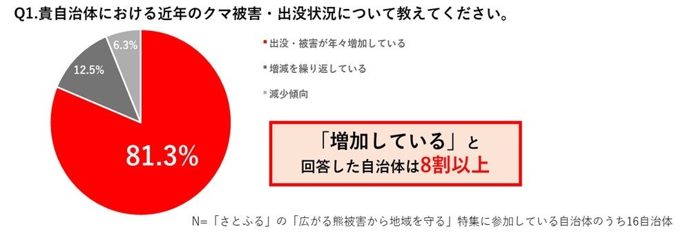 1. 81%以上の自治体でクマ被害が「増加」。担い手不足・高齢化が最大の課題に(Q1~2)