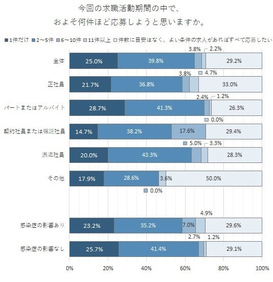 正社員は「件数に目安はなく、よい条件の求人があればすべて応募したい」が3割を超える