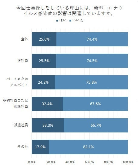 全体で25.6%が「はい」と回答し、新型コロナウイルス感染症の影響を受けて仕事探しをしていた割合は四分の一程度となった。