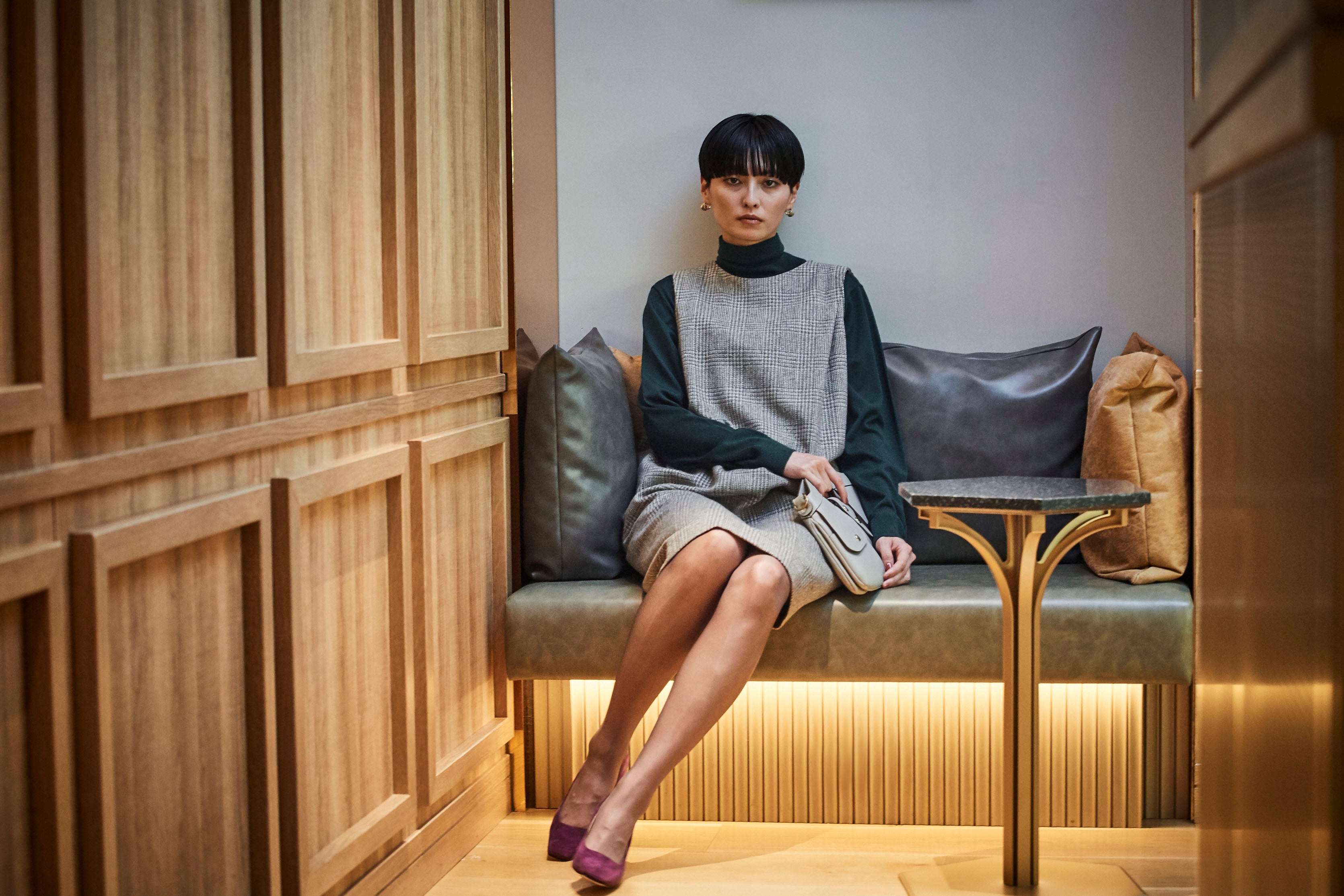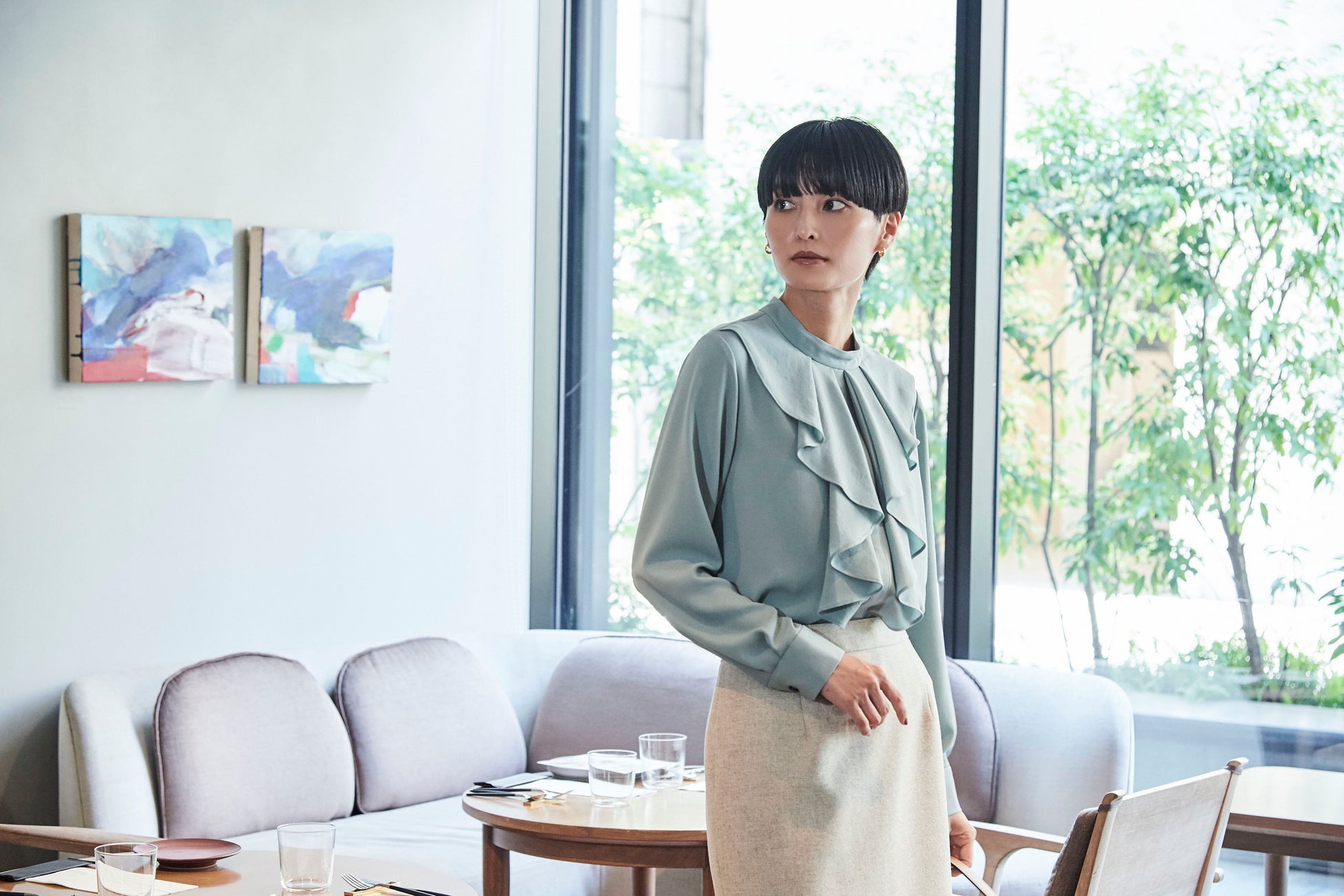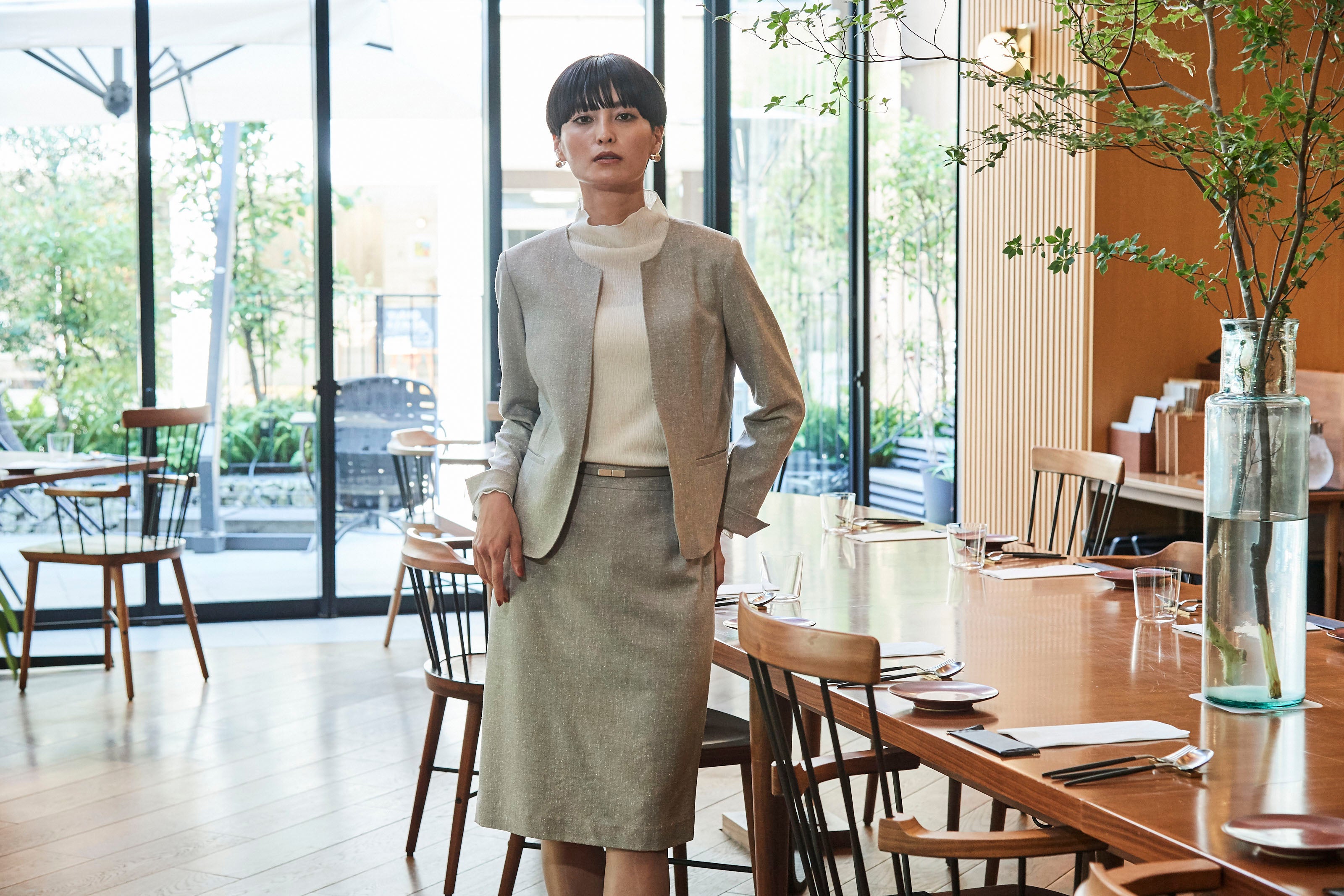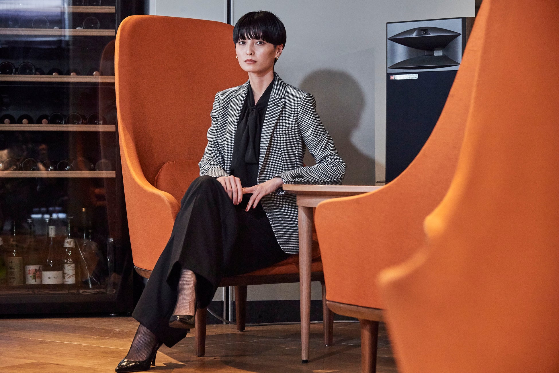 過去に学ぶがコンサバティブになりすぎないよう、スタイリングで「今」の気分をエッセンスとして取り入れたコーディネートをご紹介いたします。