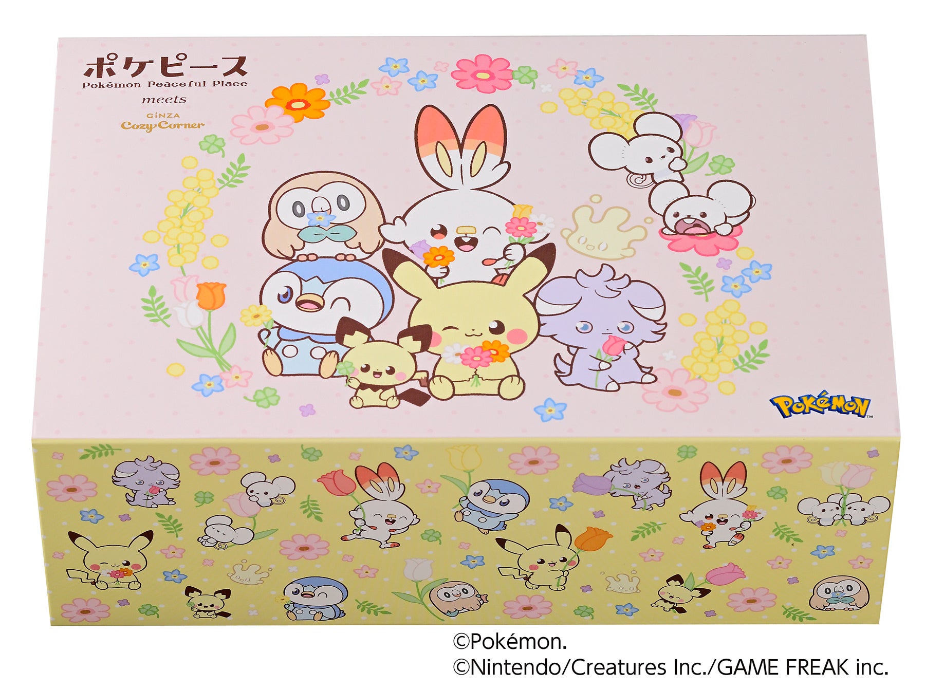特長:ポケモンたちが、のんびりきままに暮らしているシェアハウス形のボックスに、バター、もも、ショコラの風味豊かに焼き上げた「マドレーヌ」3種と、ピカチュウやピチューをプリントした「クッキー」2種をアソート。