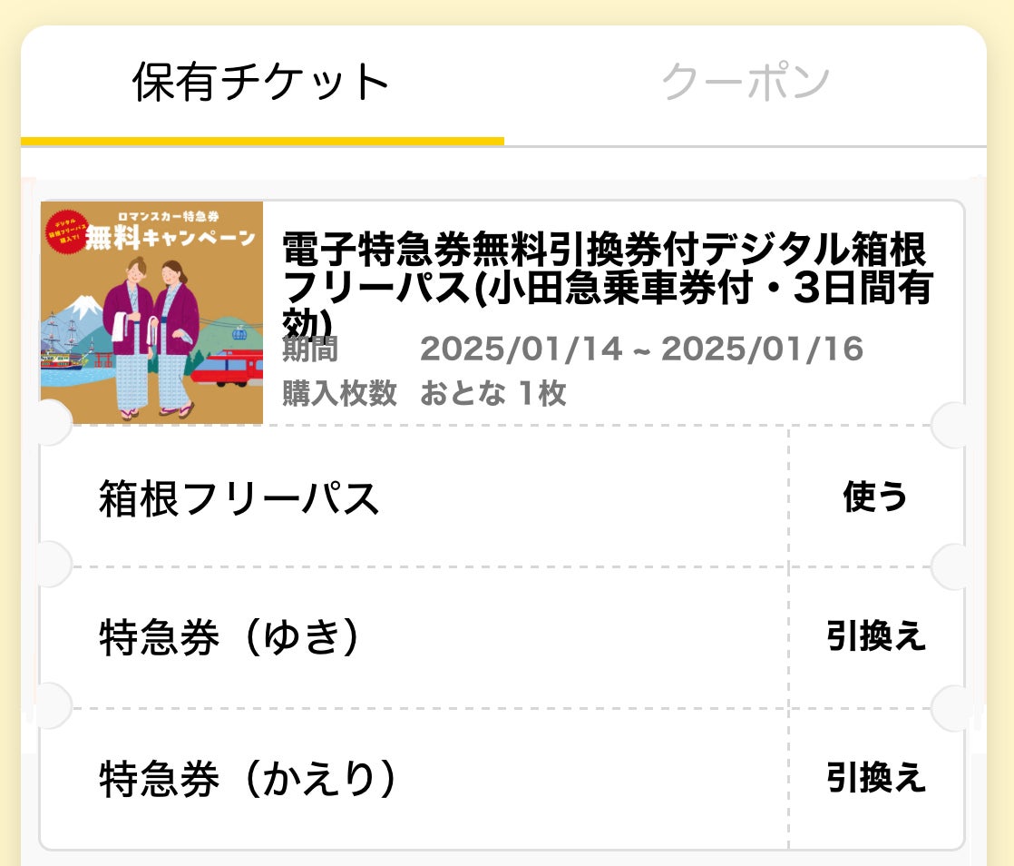 デジタル箱根フリーパス」と「電子特急券無料引換券」のセット商品