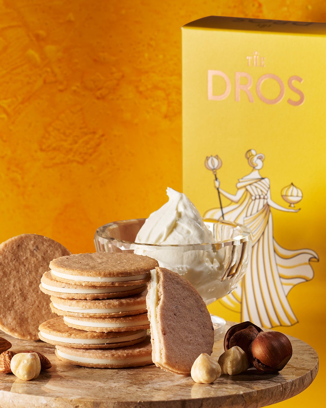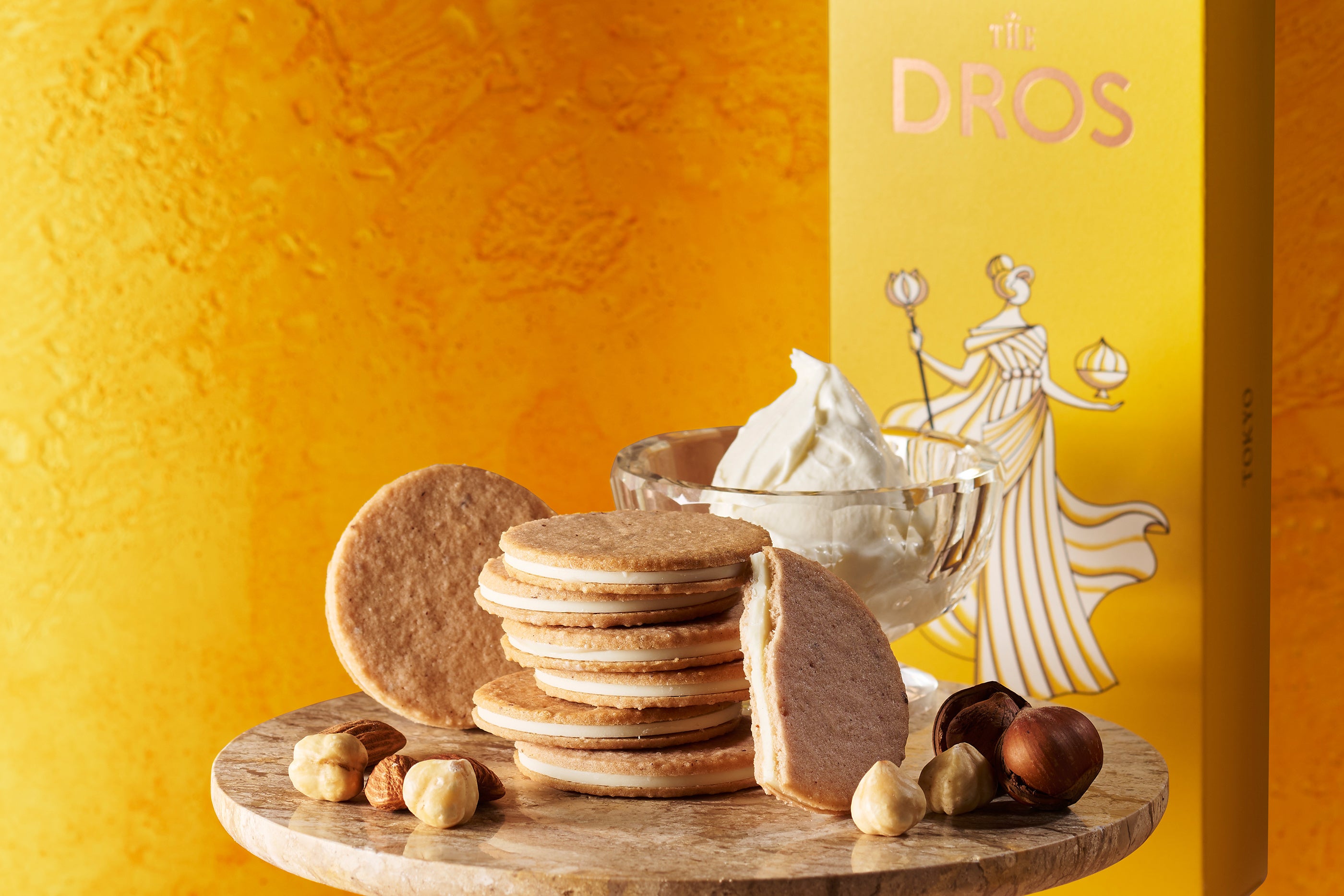 サクッ、パリッ食感。新たな魅惑のスイーツ誕生。【THE DROS(ザ・ドロス)】が贈る、木の実とチーズの味わい広がる新作クッキー。「サンドクッキー〔マスカルポーネ&ヘーゼルナッツ〕」を新発売!
