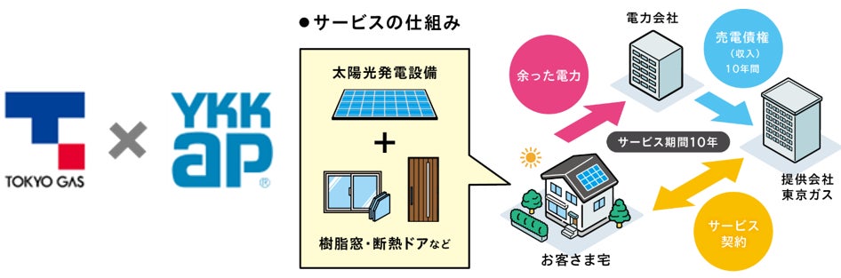 東京ガス株式会社(社長:笹山 晋一、以下「東京ガス」)は、このたび、YKK AP株式会社(社長:魚津 彰、以下「YKK AP」)と協業し、東京ガスが提供する「IGNITUREソーラー」とYKK APが提供する高断熱な「APW」樹脂窓シリーズ(*1)などの商材を組み合わせた新しいサービス「マドそらwith IGNITUREソーラー」を全国(*2)の新築戸建て住宅向けに提供を開始しました。