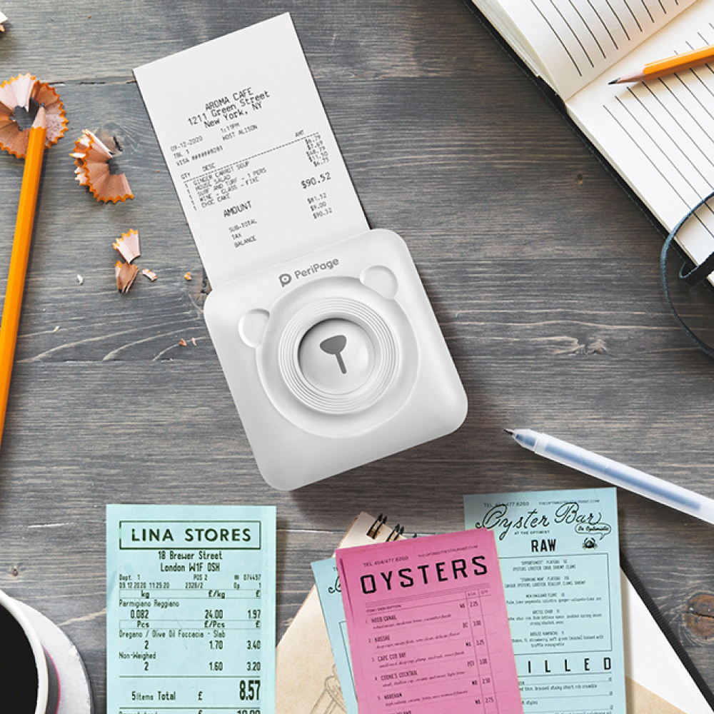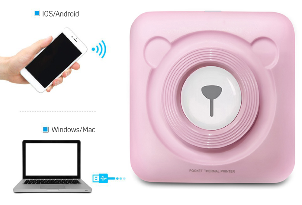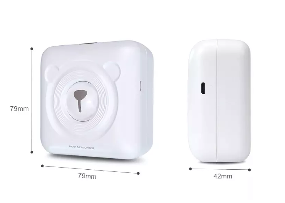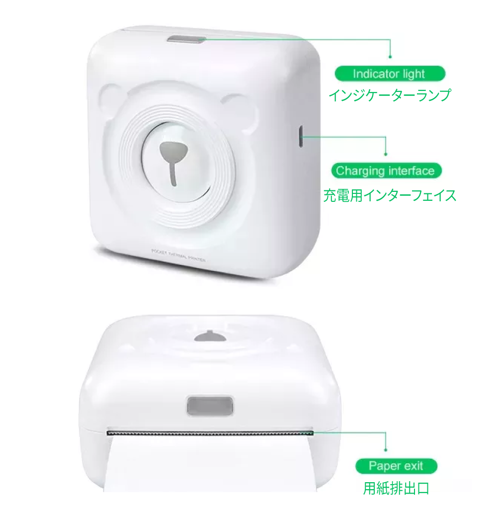 持ち運び楽々!いつでもどこでも印刷できるクマ型モバイルプリンター【304dpi/小型/充電式/モノクロ印刷/レシート/写真/イラスト/テキスト】