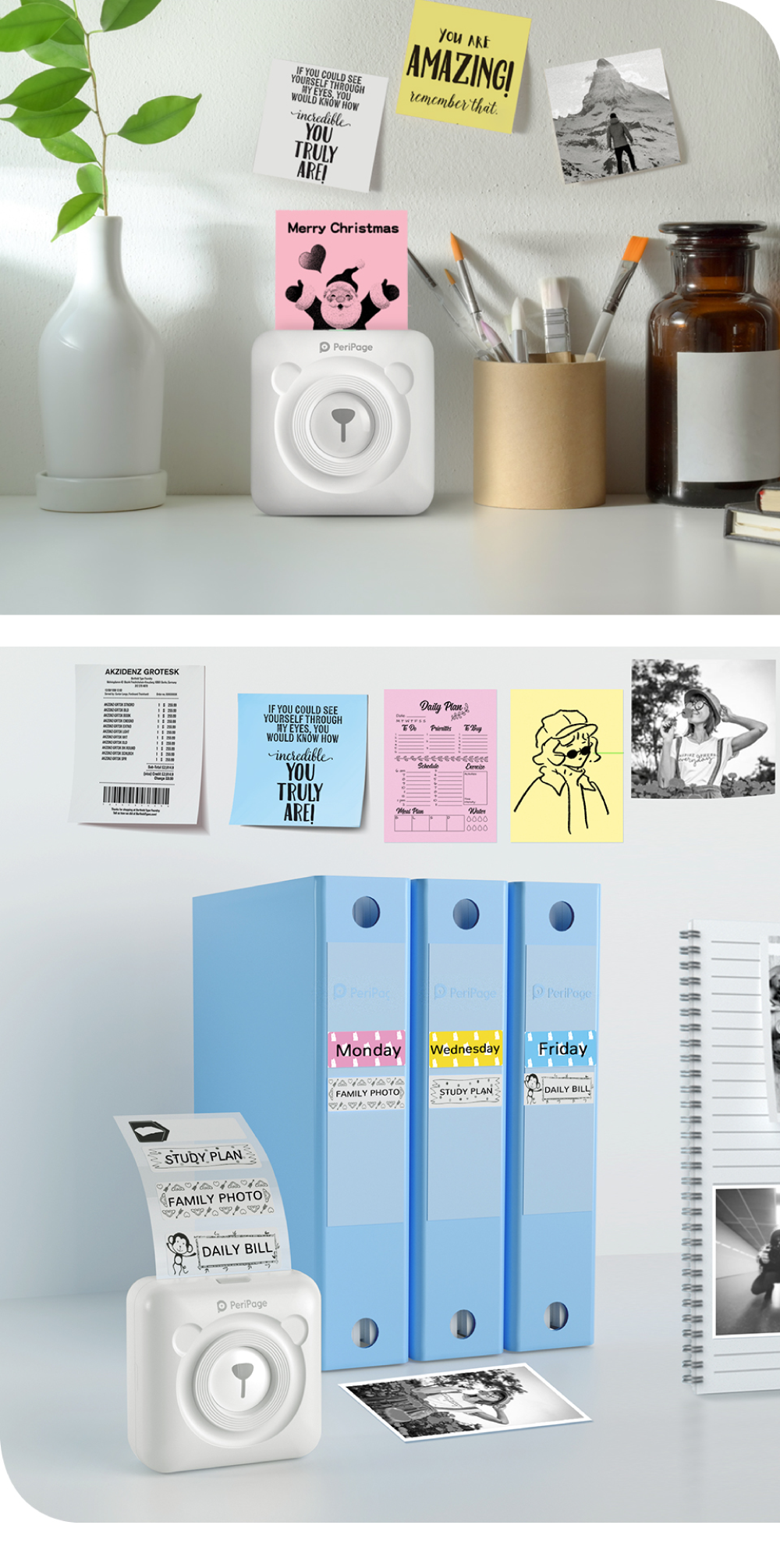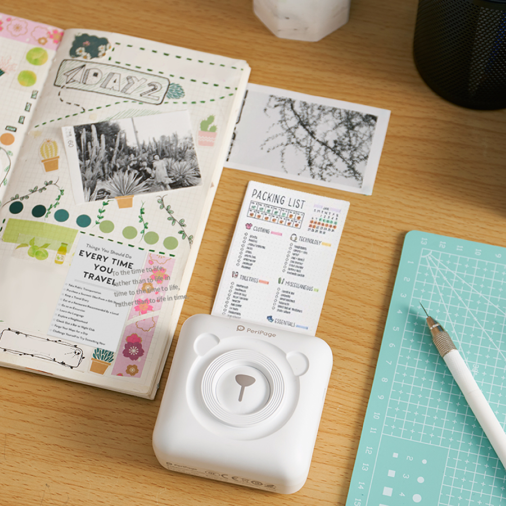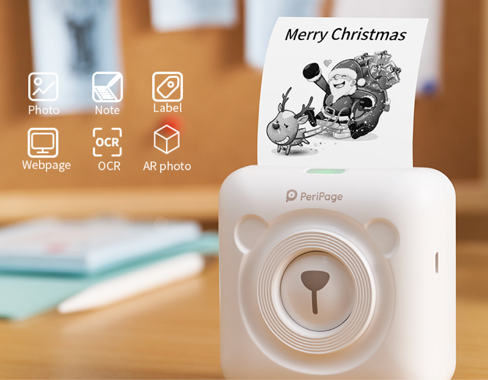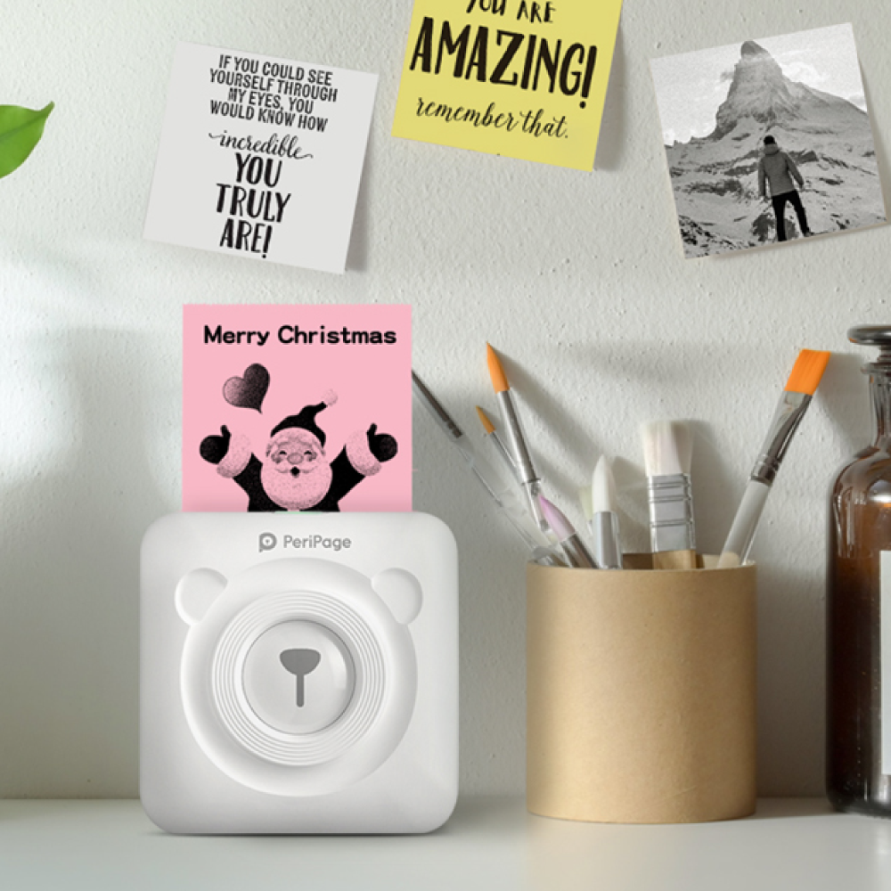 持ち運び楽々!いつでもどこでも印刷できるクマ型モバイルプリンター【304dpi/小型/充電式/モノクロ印刷/レシート/写真/イラスト/テキスト】