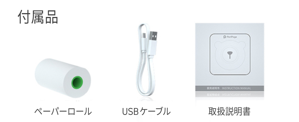 | 同梱品 | プリンター、ペーパーロール、USBケーブル、取扱説明書 |