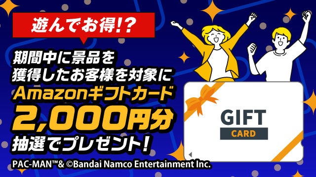 キャンペーン期間中、「ナムコオンラインクレーン」で景品を獲得した方の中から、抽選で500名さまに2,000円分のAmazonギフトカードをプレゼントします。