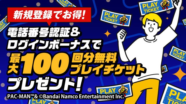 リニューアルを記念して、新規登録(バンダイナムコID登録・電話番号認証)を行うと、最大100回分の無料チケットをプレゼントします。