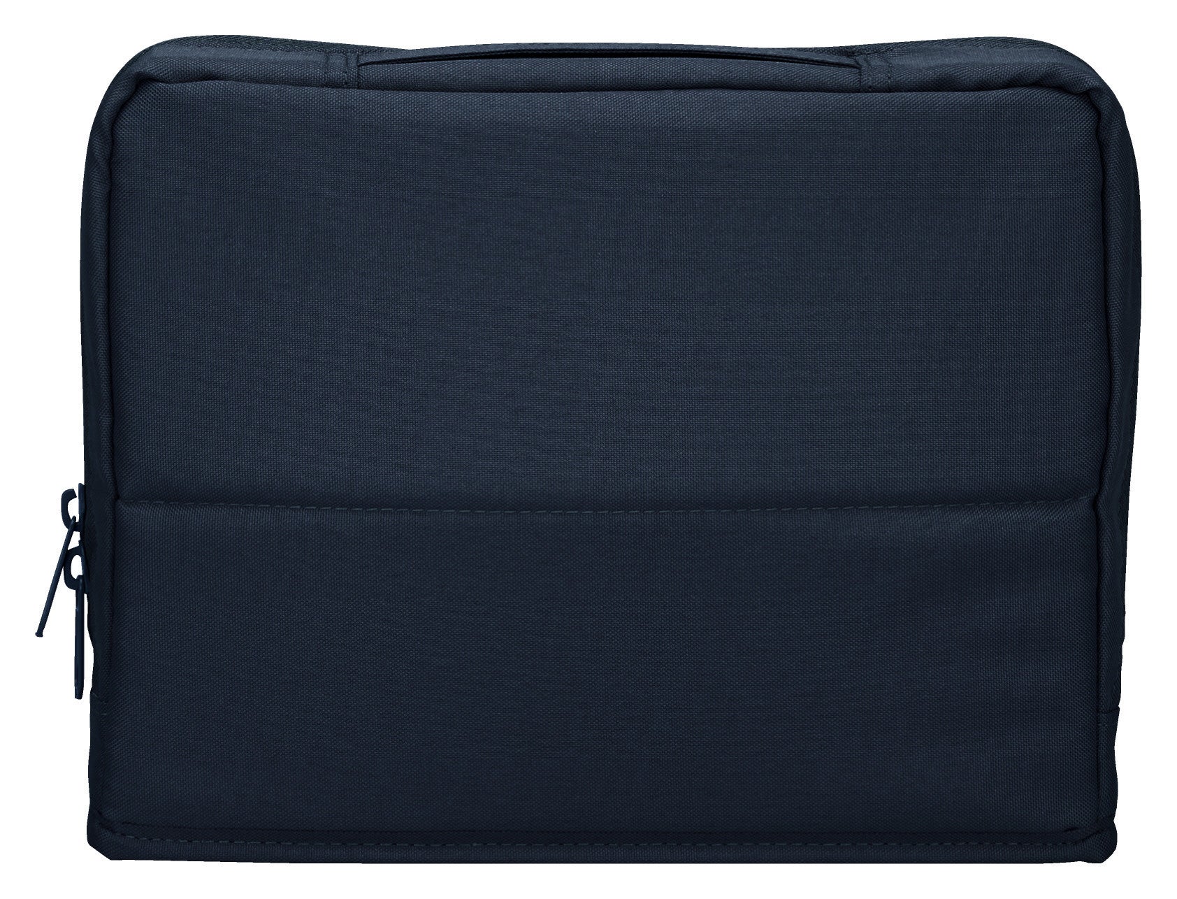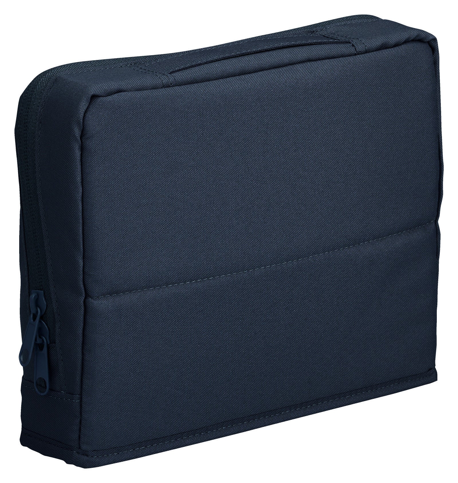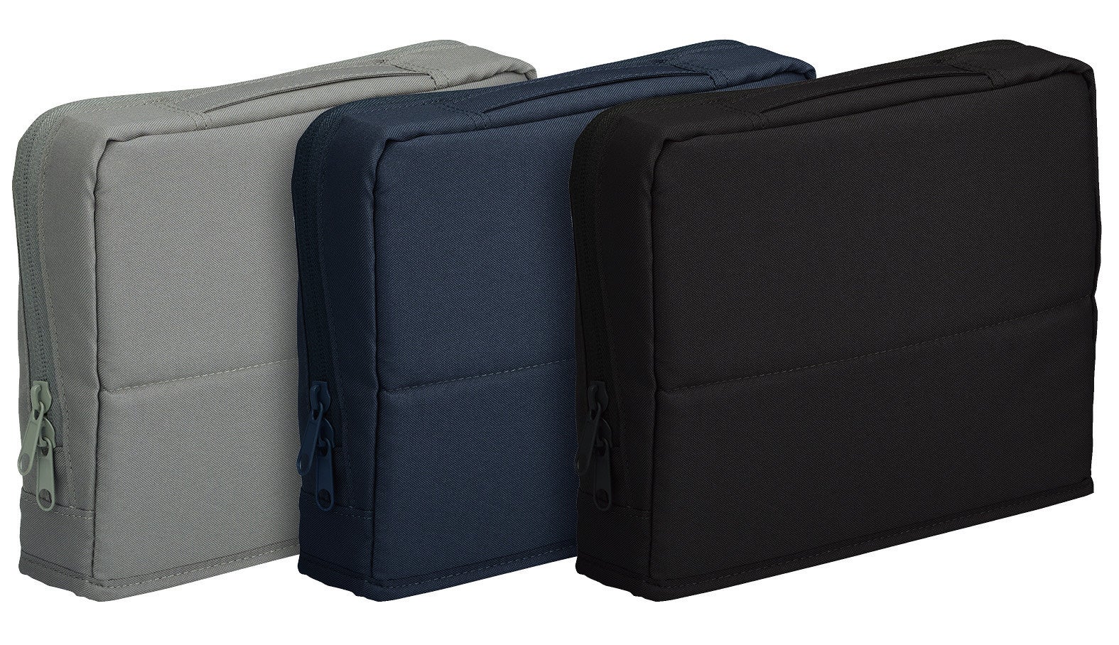 外側には落ち着いた風合いのポリエステル生地を採用しており、ビジネスシーンからカジュアルなシーンまで幅広く使いやすいデザインです。四角い薄型形状でバッグやロッカーへの収まりも良く、社内移動はもちろん、外出先へもスマートに持ち運ぶことができます。