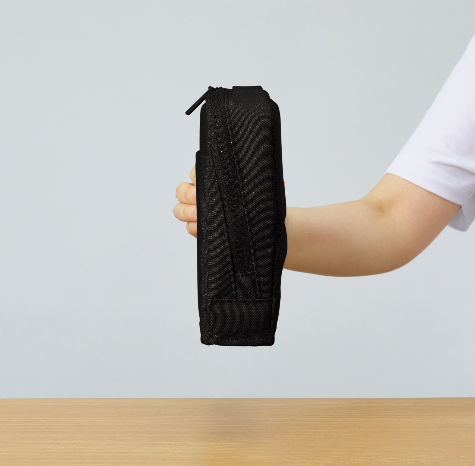 ファスナーを開けるだけで開口部が前方に広がり、自立させて使用できます。従来品にあった固定ベルトをなくし、ファスナーを開くだけでより簡単でスピーディーに自立させることができるよう構造をアップデートしました。デスクに着いてからツールを展開するまでの手間を最小限に抑えることで、効率よく仕事に取り組める環境づくりをサポートします。