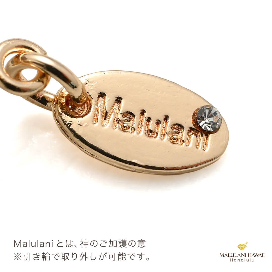 7種類(シルバーは6種類)から選べるオリジナルチャームには、ハワイ語で「神に護られた」という意味を持つ「Malulani」と刻印。