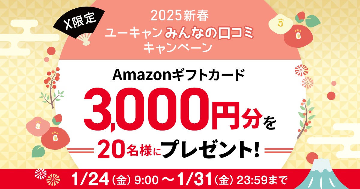 【ユーキャン】Amazonギフトカード3,000円分が当たる!X限定「2025新春 ユーキャンみんなの口コミキャンペーン」を開始!